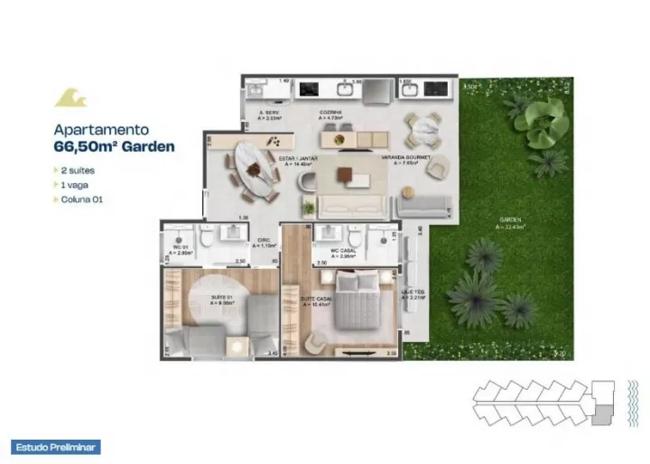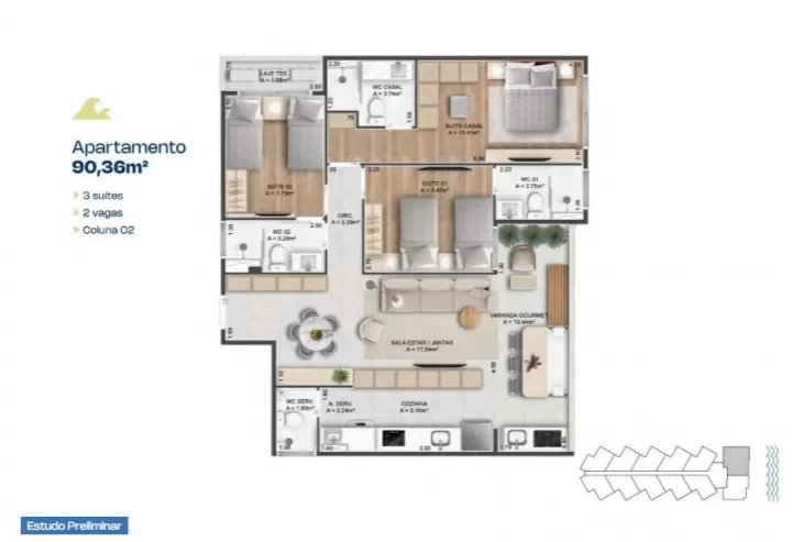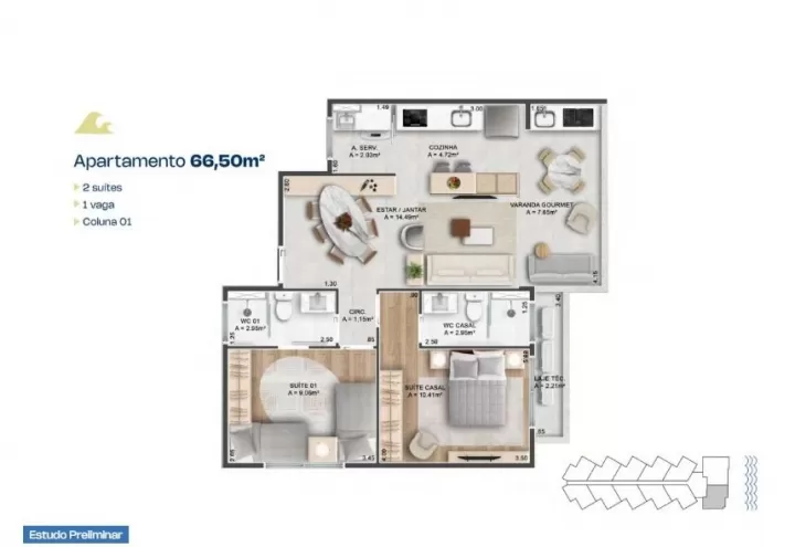 BS Wave - Apartamento com 2 quartos à venda, 62 m² por R$ 708.000 - Porto das Dunas - Aquiraz/CE